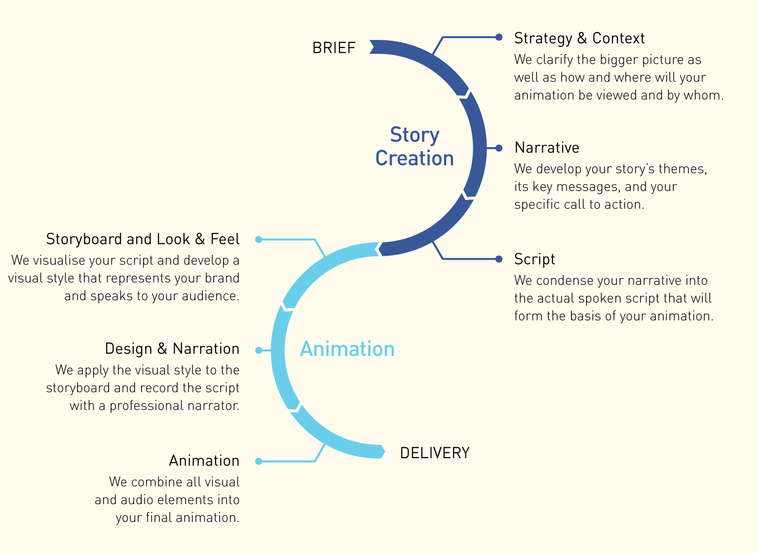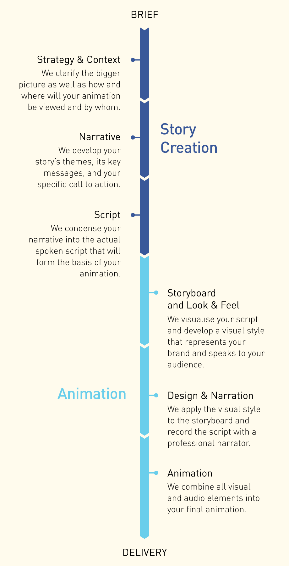The big difference between us and the “animation factories” you might have heard of, is the time and care we put into developing your story. Unless you’ve got your story right, there’s really no point wasting budget on creating an animation. It won’t work.